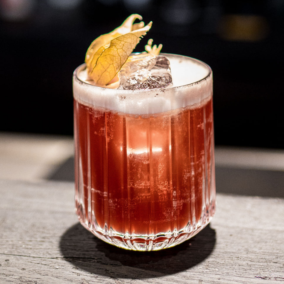 Fyrst 'mulið' saman, næst hrista allt vel saman og hellt í glas í gegnum sigti.